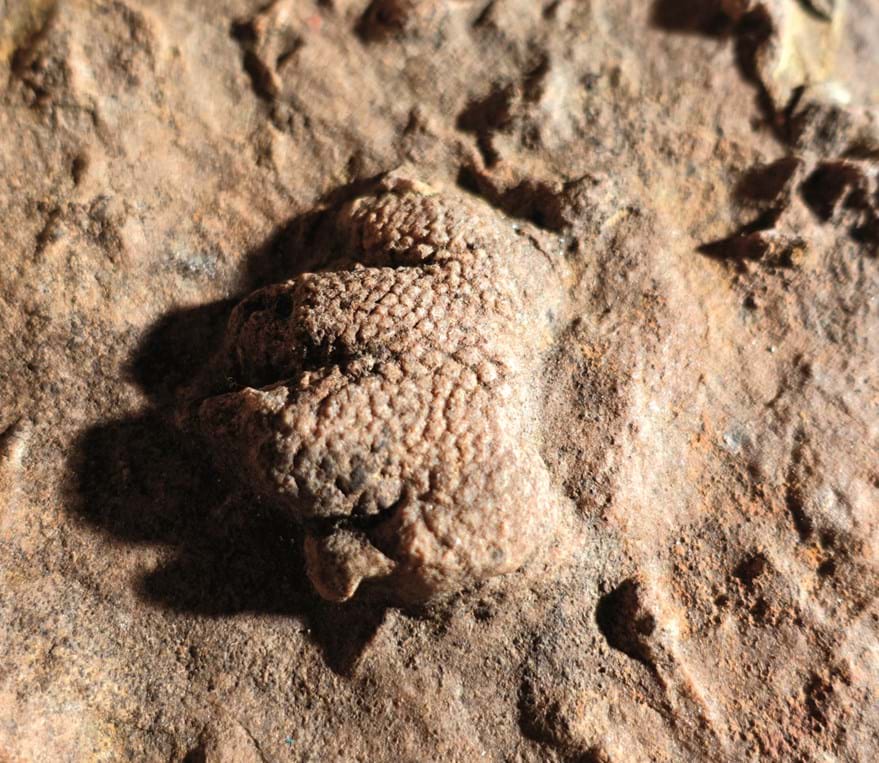 BU: Hand eines Archosauriers auf der Richelbacher Fährtenplatte. Foto: Manfred Huther.