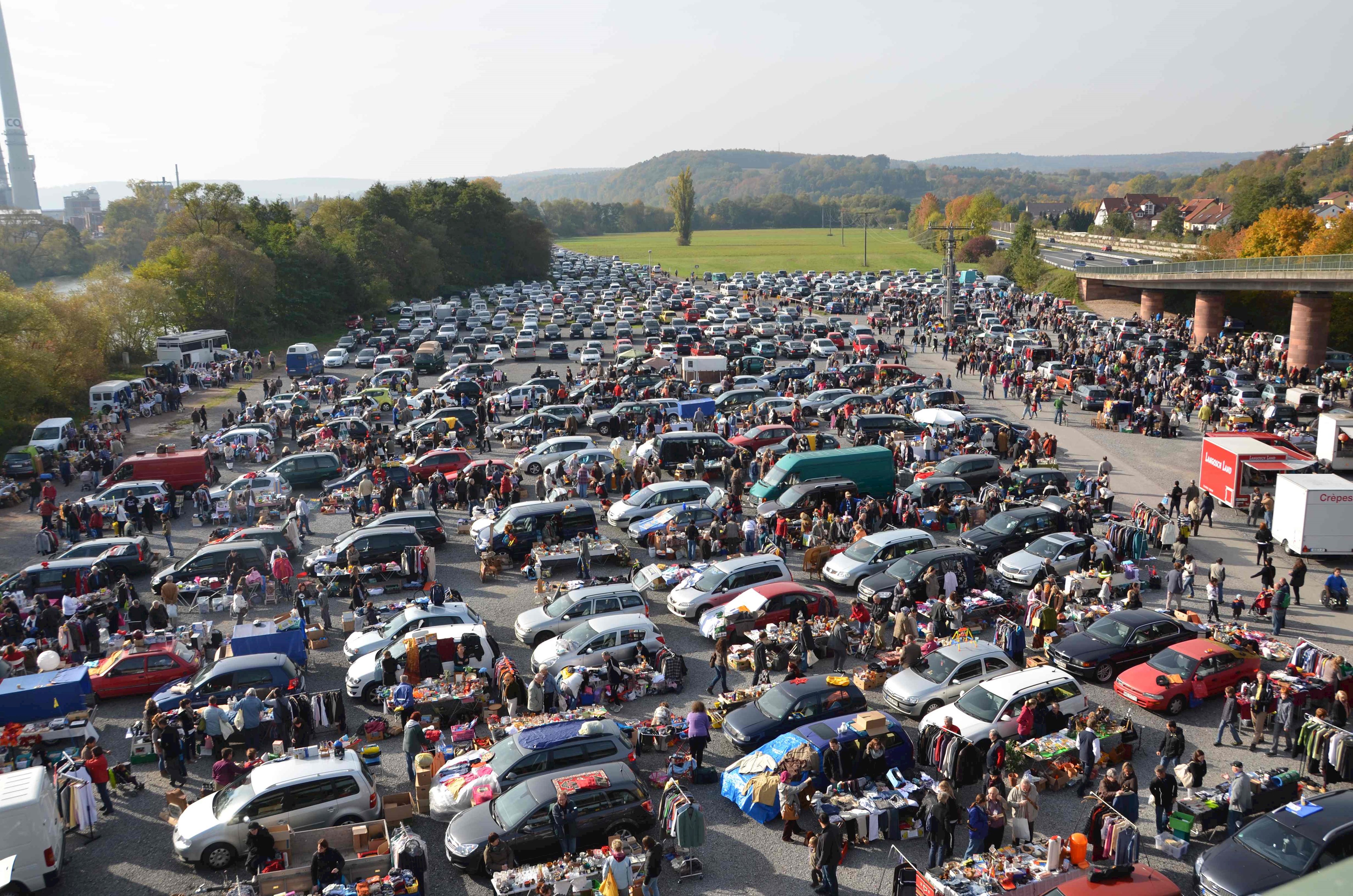 Weitere 300 Standplätze stehen auf dem Festplatz zur Verfügung. Das Einzugsgebiet des Flohmarktes hat einen Radius von über 200 km.
