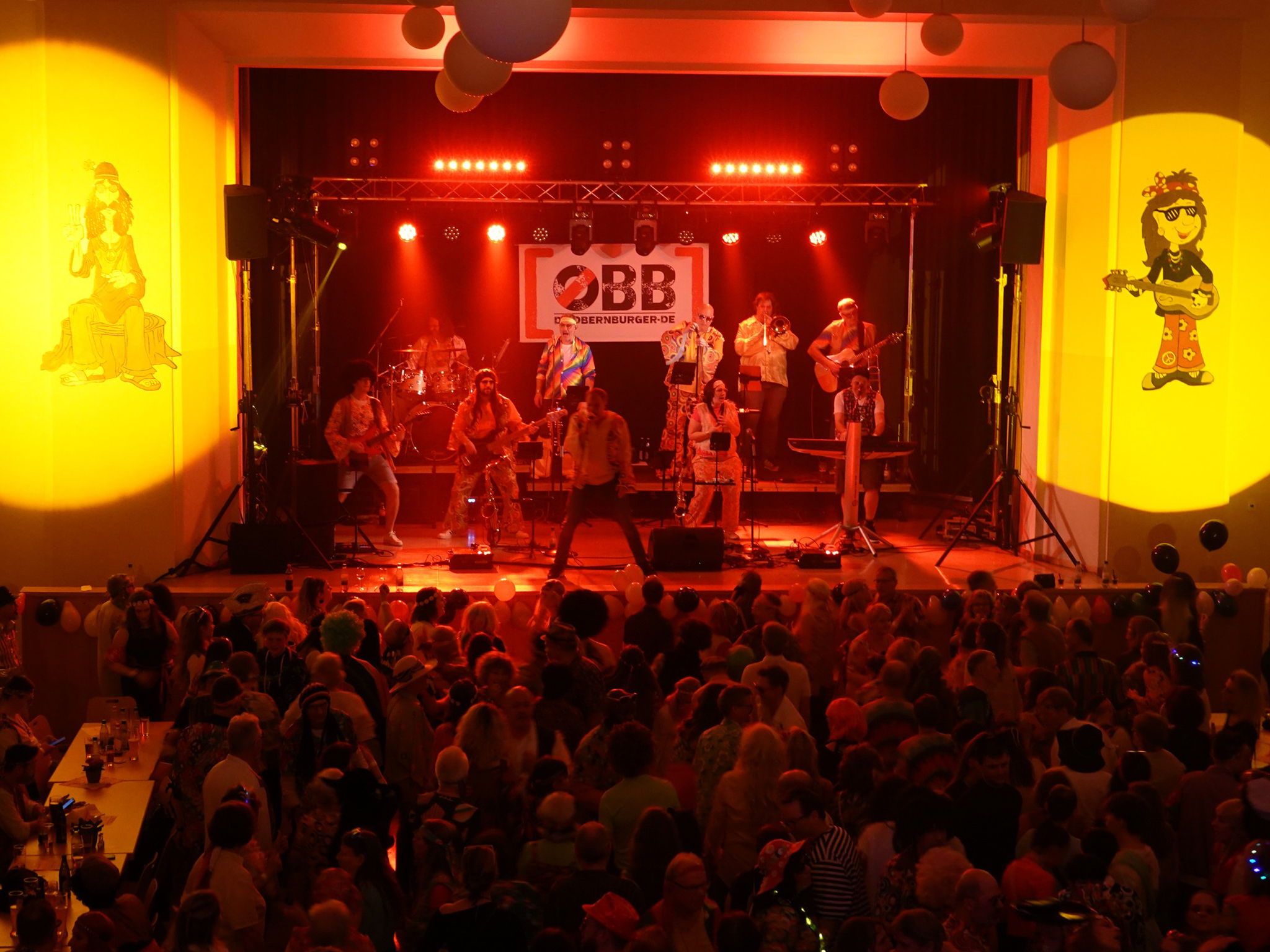 Auf dem Programm stehen Tanz- und Partymusik für Jung und Alt, die große Mottobar sowie Show- und Gardetänze! Die hiesige Partyband „[OBB] Die Obernburger“, bekannt von zahlreichen Auftritten im Rhein-Main-Gebiet, bietet mit ihrem vielseitigen Repertoire und begeisterten Arrangements ein breit gefächertes Musikprogramm. In den Musikpausen wird das Publikum durch actiongeladene Showeinlagen unterhalten.