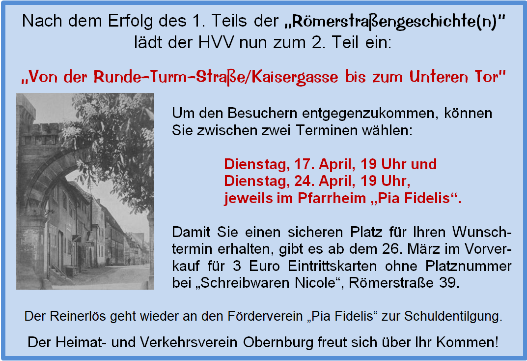 RÖMERSTRASSENGESCHICHTE(N) TEIL 2, Kaisergasse/Runde-Turm-Straße bis Unteres Tor