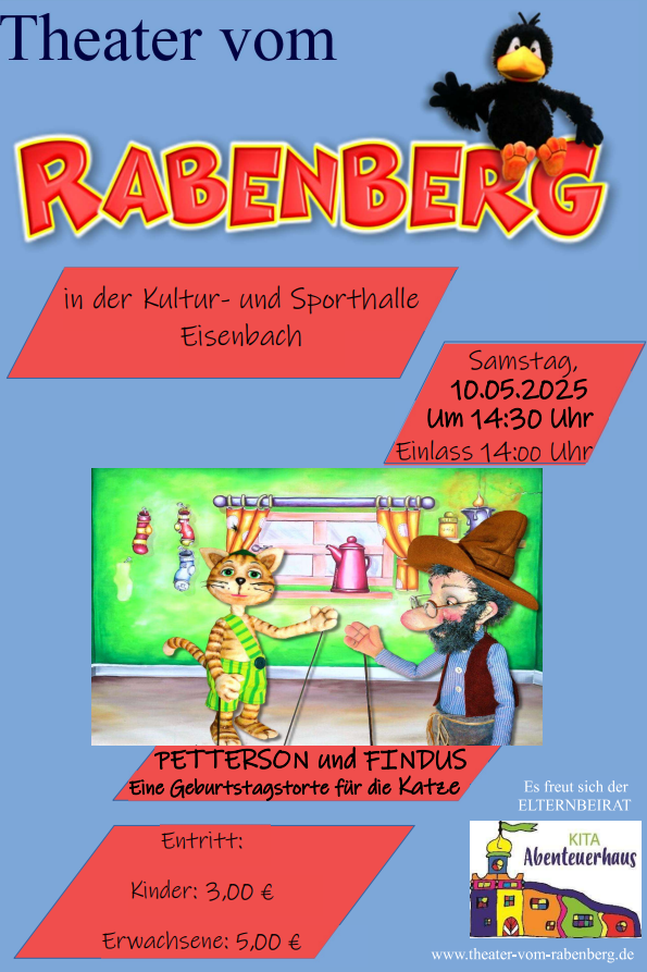 Wir veranstalten ein Figurentheater für Kinder. Das Stück heißt "Petterson und Findus - eine Geburtstagstorte für die Katze" und wird gespiel vom Theater "Rabenberg"!